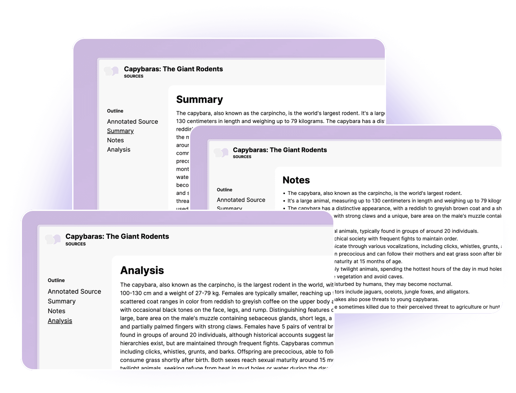 All in one tool to annotate, summarize, note take, and analyze sources so you can focus on the learning.